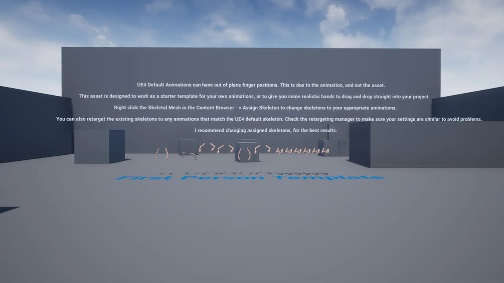 This asset is designed to drag and drop straight into your project to replace the default mannequin arms. It can be re-targeted or assigned to any skeleton that matches the UE4 default mannequin. I recommend assigning the appropriate skeleton for the best result.